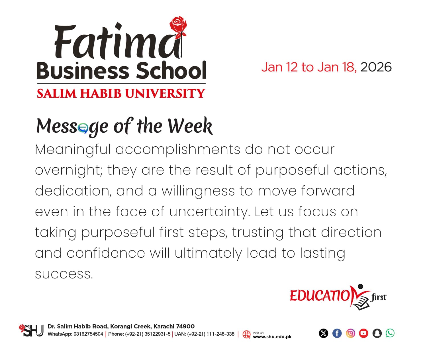 On Tuesday, January 6, 2026, representatives from Salim Habib University’s Team Admissions, Department of Social Sciences & Humanities visited the